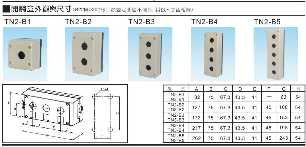 天得TN3B2-IF2 30Ø二孔開關盒+PB(G.R)