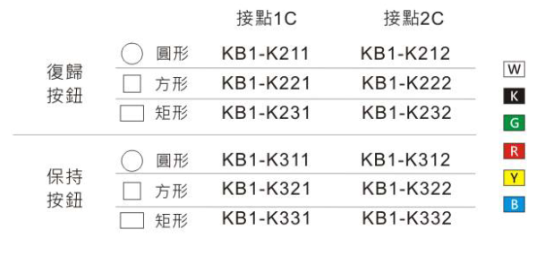 KB1-K331Y 16Ø交替式長形按鈕(Y) 無燈