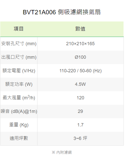 SUNON BVT21A006變頻(濾網)扇21CM 4.5W