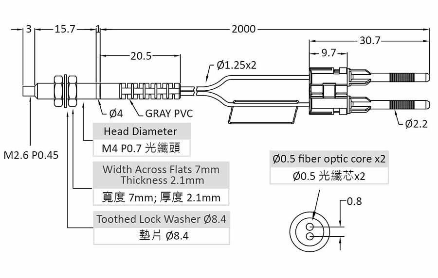 RiKO 光纖感測 M4反射/30mm PRD-420-B1