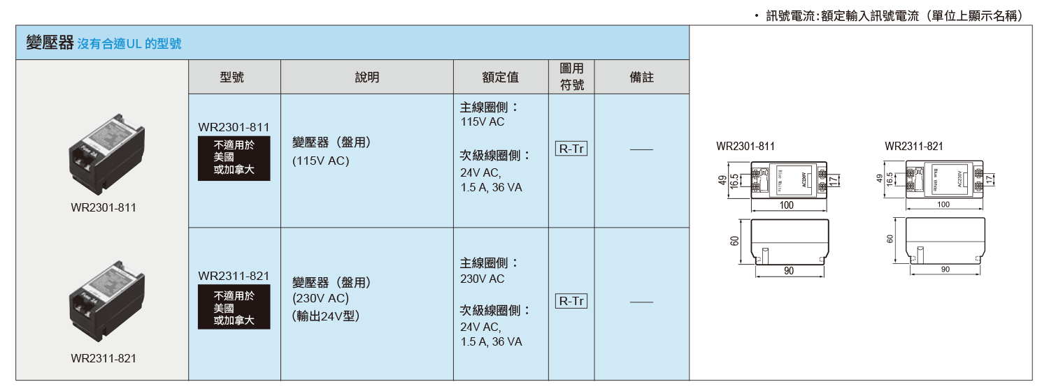 國際(TR) WR2311-821 二線式變壓器220V 松下變壓器WR2311-821 220V |