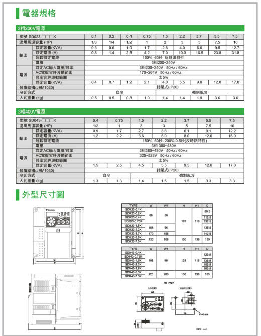 士林INV SD023-1.5K 2HP 3Ø 220V 士林變頻器SD023-1.5K 220V 2HP 3Ø 1.5KW |
