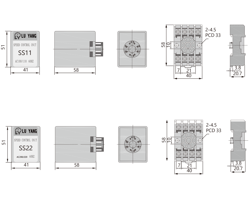 1Ø調速器 1Ø220V/150W(底座式) SS11 * 6-150W/220V 90-1600RPM 50%/5SEC |