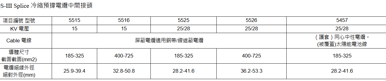 產品參數表