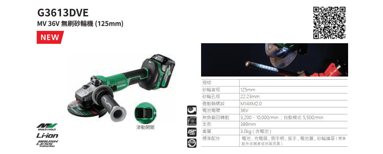 無刷砂輪機36V G3613DVE BSL36A18*2