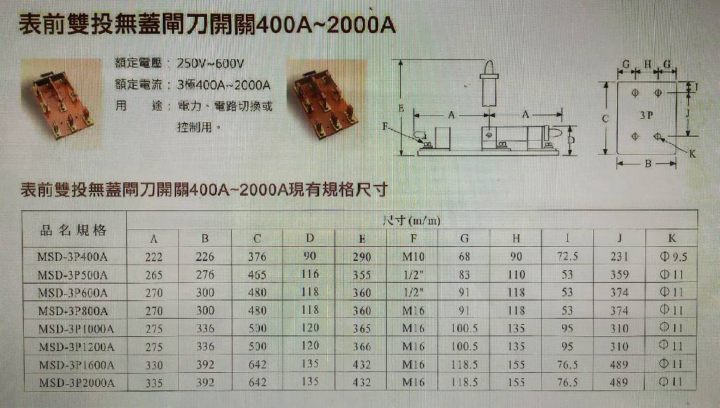 (訂)雙投表前開關(A級) 3P2000A(電木) 西北<雙投>表前3P2000A (電木) |