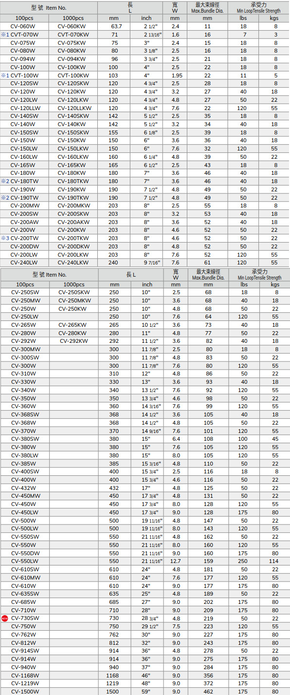KSS CV-075W W=2.4 耐候紮線帶 100PCS