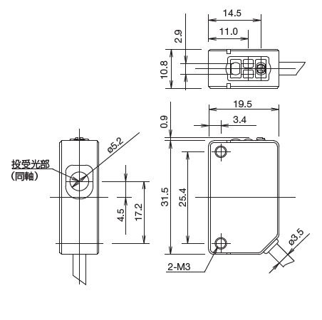 與非防爆型內建放大器的小型光電感測器 SA2E 型相同的小型尺寸