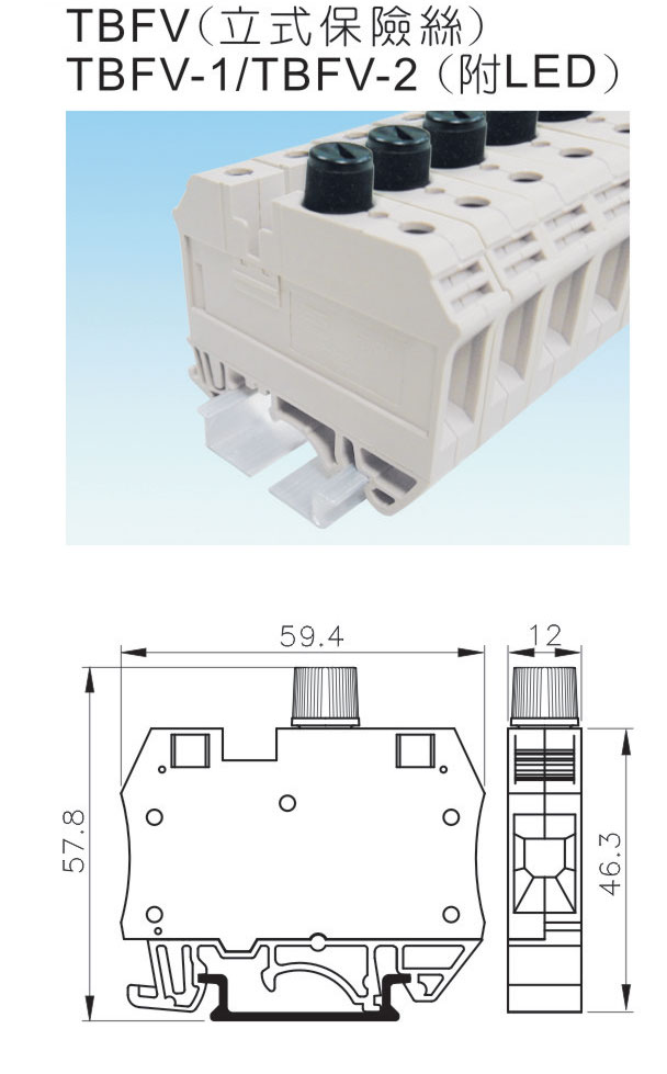 天得TBFV-1 歐規立式保險絲端子台10-30V
