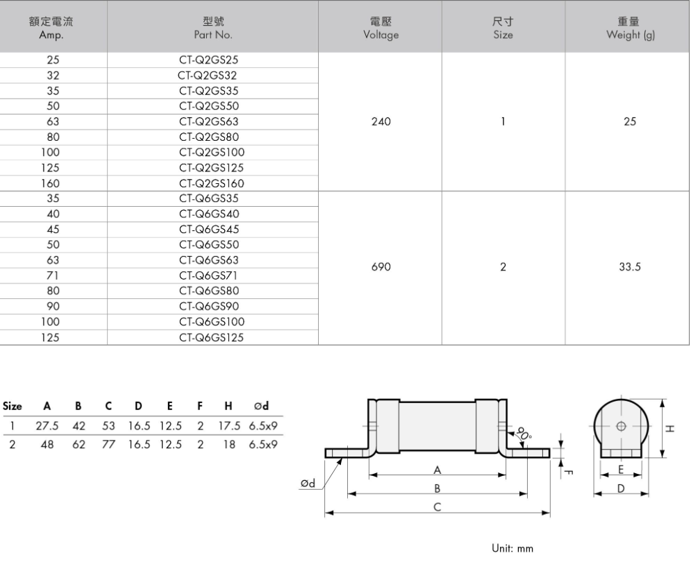 <台>BS88 保險絲 690V 100FE Q6GS100