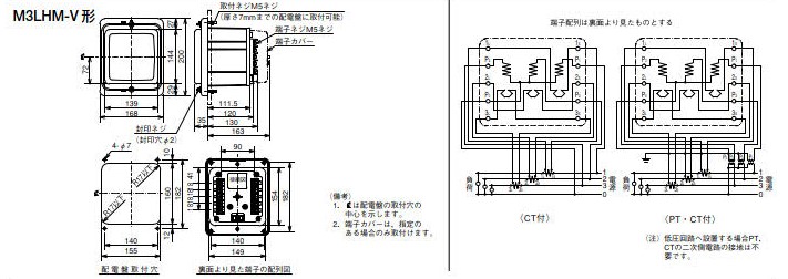 三菱 M3LHM-V 3φ4W 5A 120-208V埋入 三菱積算電力 M2LHM-V |