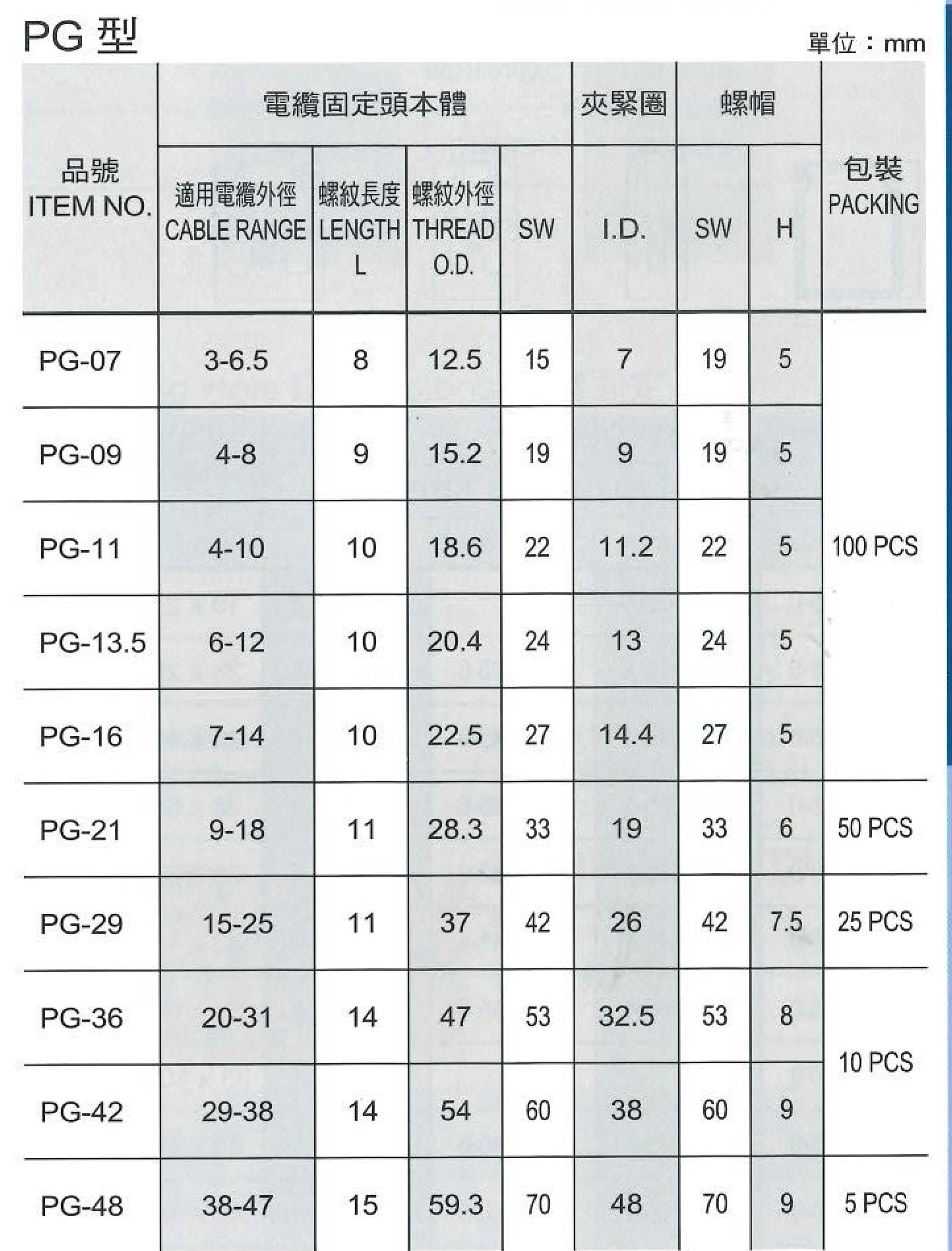 PG型 固定頭Ø47 (30-31mm) PG-36 Y.Y. PG-36 固定頭Ø47 (15-25mm) |