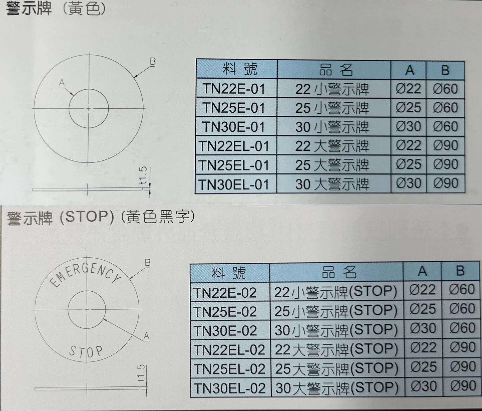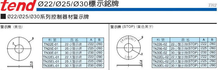 -**天得 22Ø小警示牌 TN22E