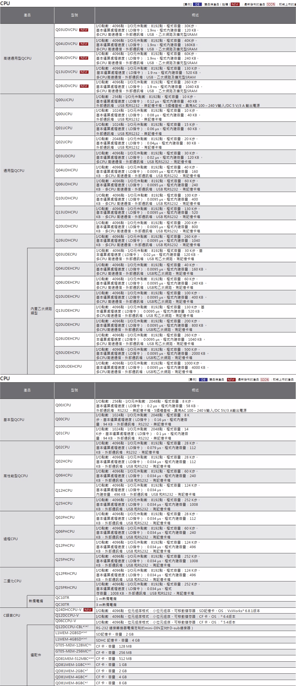 三菱Q系列 Q03UDECPU CPU *2026年10月停產
