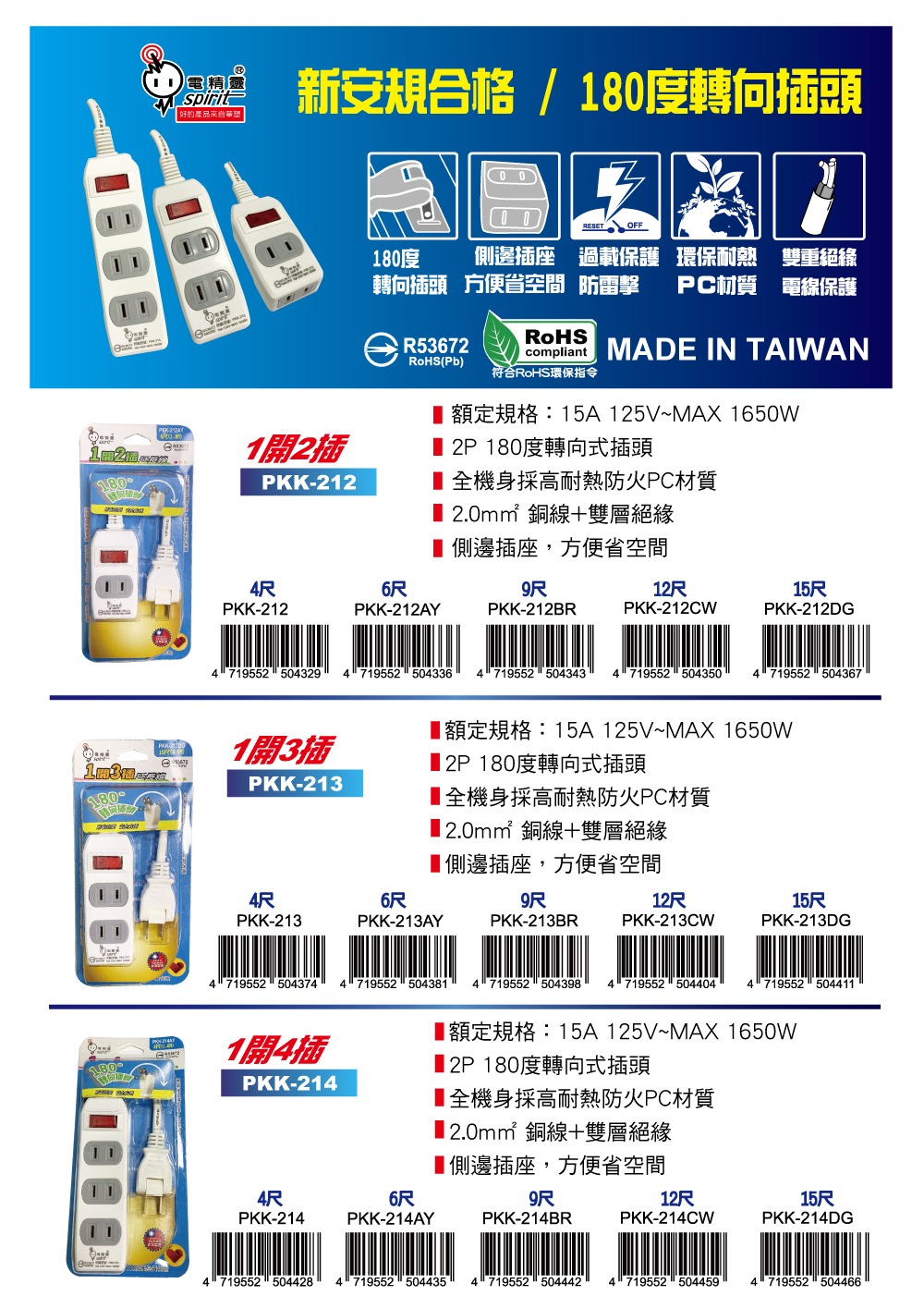 6尺延長線<2P1燈3+1插/15A> PKK-214AY