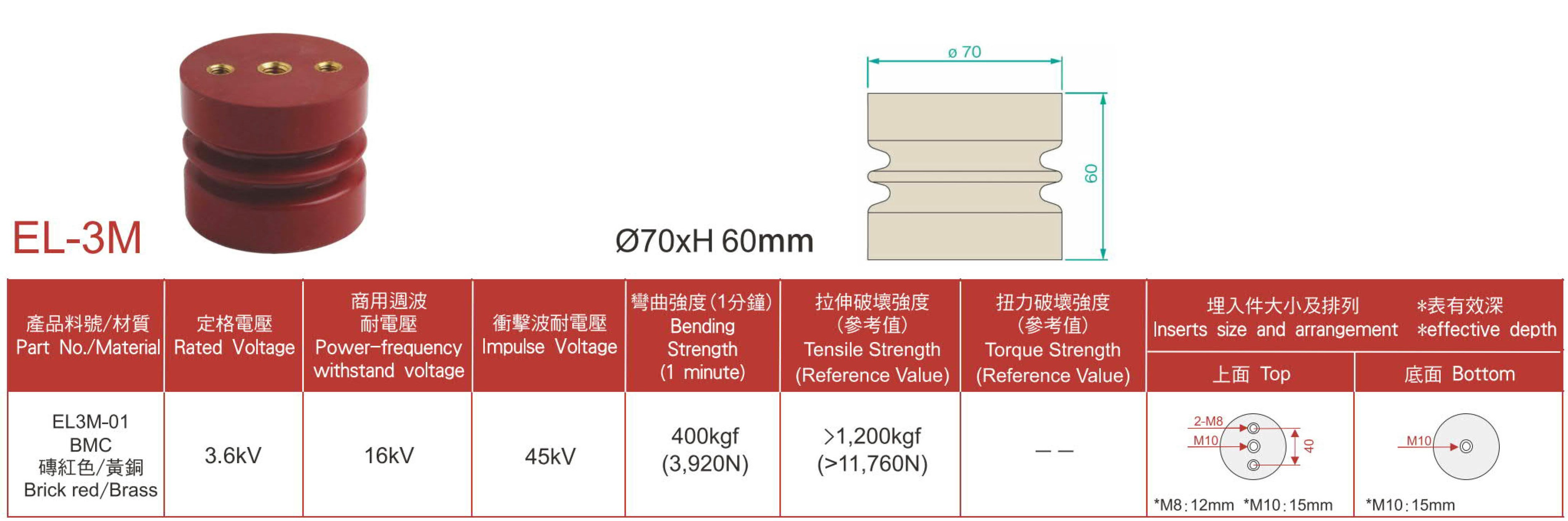 高壓支持礙子 EL-3M(60*70)2對平行 BMC 高壓支持礙子 EL-3M (60*70) BMC |